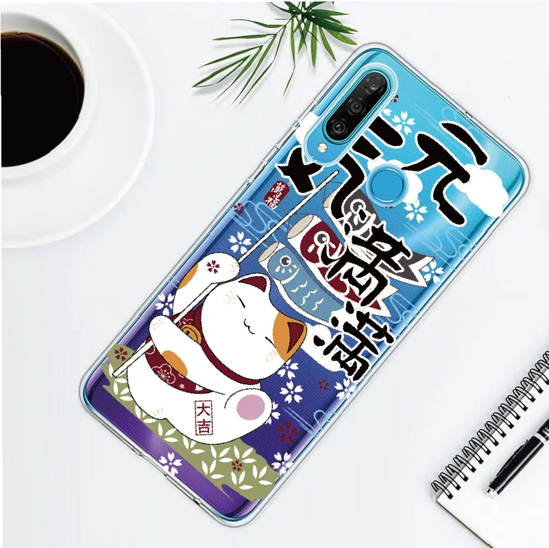 On sale Koi Fish Cherry Blossom Lucky Cat For Huawei Honor Mate 10 20 Nova P20 P30 P Smart Soft TPU Crystal